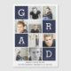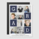 Marineblauw moderne grafische foto collage afstudeerkaart. Een moderne, grafische multi-foto afstudeerkaart. Verander eenvoudig de achtergrondkleur om de kaart te personaliseren. Perfect voor het tonen van een selectie van foto's of leeftijden van uw afgestudeerde. Maakt deel uit van een gecoördineerde collectie.