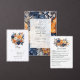 Marineblauw, verbrand sinaasappel, en champagne bloemenzomer bruiloft menu. Ideaal voor een zomerse tuin bruiloft.