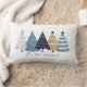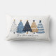 Kerstvakantie Lumbaal Kussen met moderne eenvoudige marineblauwe kerstbomen en de achterkant in dezelfde kleur. Personaliseer de tekst eenvoudig - Kate Eden Art