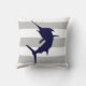 Het Navy Blue Jumping Marlin On Grey And White Stripes Sierkussen gaat goed samen met nautische of neutrale thema’s.