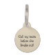 Cute name tag die perfect is voor je huisdier of hond. De voorzijde en de rug hebben een perzikachtergrond. Een ruimte voor uw huisdiernaam, adres, en uw telefoonaantal zijn aan één kant. De andere kant zegt: Bel mijn moeder voordat ze uitkomt. Ideaal voor je levendige familieleden.