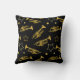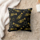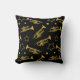 Stijlvolle zwarte kussen met een patroon van trompetten en sterren. Voor bendes, marchingbandleden, jazzmuzikanten, muziekdocenten en nog veel meer.