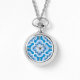 Digitale weergave met gemengde media van een klassiek Marokkaans tegelpatroon - Licht blauw hemel, kobalt blauw en wit op een echte blauwe achtergrond