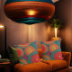 Marokkaanse exotische rode oranje blauwe cirkel kussen