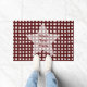 Maroon cheque & witte ster bewoording deurmat
