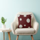 Stijlvol polka dot kussen gedaan in kastanjebruin met verschillende maten van een licht zilvergrijs polka dot patroon. Komt overeen met ons kussen van maroon en witte cheerleader.