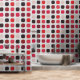 Dit ontwerp heeft een modern gestructureerd geometrisch motief met zwarte, donkerrode, kastanjebruine, magenta, roze en beige afgeronde vierkanten op een ivoorwit gekleurde achtergrond. Het patroon is zowel als elegant en straalt een funky hipster essentie uit. Het is een verfijnd en chique ontwerp dat eclectisch minimalisme vertegenwoordigt, ideaal voor artistieke interieurontwerpers, liefhebbers van huisdecors, trendsetters en liefhebbers van , retro of abstracte digitale geometrische patronen. Dit maar trendy hipsterpatroon is veelzijdig en wordt aangeboden op een reeks eigentijdse producten voor huisdecoratie, geschikt voor het verbeteren van de sfeer van verschillende ruimtes zoals hoofdslaapkamers, keukens, woonkamers, mannen grotten, universiteitsslaapzalen, condominiums, studio's of appartementen.