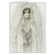 Een mooie zwarte en witte potloodschets van Mary in de Grotto, die een kleine bloemen in haar handen houdt.