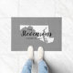 Moderne boerenboerengepersonaliseerde doormat met je familienaam in je staatskaart. Faux burlap canvastextuurachtergrond. Klik op Aanpassen om uw eigen tekst en afbeeldingen toe te voegen en een uniek ontwerp te creëer!
