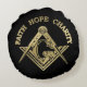 Het is een mooi kussen met het levenswiel er op. Je ziet dat het een afbeelding is van een tempeldeur of wand, het hout is herkenbaar. Het past geweldig in ons interieur: een beetje Zen, maar wel kleurig. Mooie kleuren, zoals op de afbeelding.