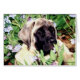 Een prachtige fawn Mastiff puppy die in de bluebells ligt.