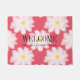 Ventilatormat met bloemen en aangepaste welkomsttekst en citeer als 'Thuisvriendelijk thuis'. Maak je eigen aangepast grappige doormat met een aangepaste kleur achtergrond die koraal roze is. Voeg uw eigen welkomstbericht, familienaam, monogram, achternaam of grappig citaat toe. Cute gift idee voor vrienden en familie met een nieuw thuis/huisopwarmingsfeest. Aangepaste kleur achtergrond. rustige landschapskisttikanteltypografie. sjabloon van het doormatbord. Creëer je eigen mat / tapijt voor de voordeur / ingang of de hal / trouwplaats . decor/decoratie voor huis in de openlucht voor uw huis. Verkrijgbaar in kleine en grote afmetingen.