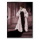 Mata Hari staat in een lange formele gang op de vloer in zwarte garnaal en jas. retoucheerd afbeelding in zacht violet. Foto maakt deel uit van serie.