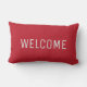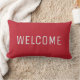 Moderne rustische warme rode Faux Burlap Welkom kussen.