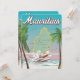 Illustratieve kaart van Mauritius in een prachtige of retro stijl, met een zee vliegtuig dat op een prachtig strand landt.