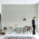 Geniet van boho-elegantie in onze abstracte Floral Fountain dot mandala in een modern patroon uit het midden van de eeuw met behulp van kleuren uit ons Maximalist Rainbow-palet.