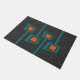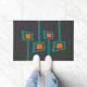 Retro Welcome Mat - Retro Atomic Age Mid-Century Modern Print in blauw en Sinaasappel. Deze mat is geschikt voor uw entree of overdekte veranda, het toevoegen van een element van retro stijl. Verkrijgbaar in verschillende maten om aan uw huisdecoratiebehoeften te voldoen. Deze deurmatten maken een geweldige gepersonaliseerde housewarming, verjaardag, moederdag, vaderdag, Kerstmis en makelaarscadeaus.