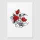 Contour, mechanische halve maan met tandwielen, versierd met rode rozen met zwarte verrijkte stengels en bladeren op witte achtergrond. Steampunk