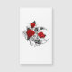 Contour, mechanische halve maan met tandwielen, versierd met rode rozen met zwarte verrijkte stengels en bladeren op witte achtergrond. Steampunk