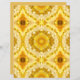 Papier in een twaalfpunts, batik effect, medaillon patroon, in tinten van donker tot licht mosterdgoud en warm goudgeel