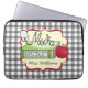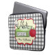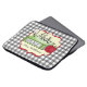 Een elektronische tas voor de schoolmediaspecialist met een afbeelding van een boek naast een rode appel en een computermuis. Personaliseer met jouw naam. Achtergrond is grijze gingham.