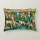 Pillow met William Morris tapestry Verdure met Deer and Shields (1891-1894). Een verdorven hertengebied drink uit een zwembad en eet uit bladeren van bomen in een groen bos. Boven hen hangen de schilden van de Knachten van de Rondetafel. Een schitterend cadeau voor Artrianliefhebbers en Victoriaans kunstverzamelaars.