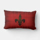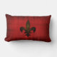 Een rode fluwelen kussen met een Fleur de lis in oud goud