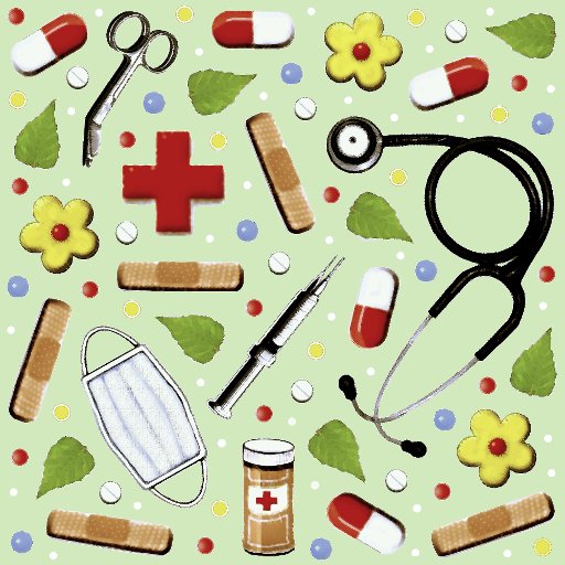 Creatief stropdas met een medisch thema met een patroon van zorgbenodigdheden.
