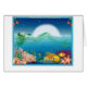 Een mooie zeemeermin drijft vreedzaam onder een volle maan, met een volle oceaan van leven onder haar