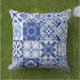 Mediterraan Blauw Wit Tegel Patroon Waterverf Buitenkussen