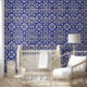 Mediterraan, blauw tegels, Portugees, Azulejo motief, behang.