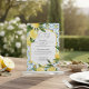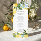 Add a fresh Mediterranean touch to your reception tables with this Mediterranean lemon wedding menu. Featuring hand-painted watercolor lemons, lush green leaves, and a vibrant blue-and-white Italian tile pattern, this design is inspired by the charm of the Amalfi Coast and Southern Italy.