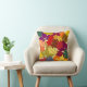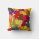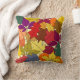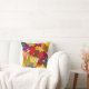 Deze gooiende kussen hebben een ontwerp van een stapel bladeren in groen, geel, oranje, blauw, bruin, en rood op een gebied van bleek geel.