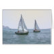 Deze zeilboten gliden langzaam en moeiteloos in een zachte bries. Het afbeelding wordt teruggegeven alsof het in een droom is. Kun je dromen van zeilen? Blanco kaart.