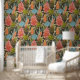 Transformeer je ruimte met dit opvallende behang, versierd met een abstract Afrikaans botanisch patroon. Met levendige tinten van sinaasappel, rood, blauw en groen tegen een donkere achtergrond, voegt dit ontwerp diepte en rijkdom toe aan elke kamer. Perfect voor het maken van een gedurfde statement muur of een meeslepende sfeer, ideaal voor doe-het-zelfdecorateurs.