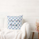 Meerkleurige gestreepte blauwe harten op wit kussen