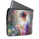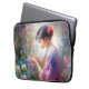 Meisje bewondering van een bloem in haar handen laptop sleeve