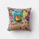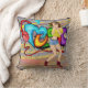 Meisje met kort bruin haar dansen en een graffiti muur achtergrond. De ene kant van het kussen heeft een grote print en de andere kant heeft een kleiner herhalingspatroon. Er is een serie van deze prints met verschillende personages.