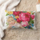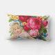 Victoriaans extravaganza, met een blonde peuter met een enorme hoeveelheid rozen, maisieën en vergeet-me-nots op haar rug, en met een heldere rode paraplu of parasol. retro leuke, coole, kleurrijke, prachtige, artistieke elegante originele creatieve mode decor florale natuur fijne kunst.