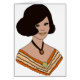 Handgetekende illustratie van een model van mode uit de jaren zestig, gedaan in donker en bleek sinaasappel.