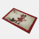 Deze schattige halloween-doormat bevat een afbeelding van Frances Brundage die een klein meisje laat zien dat in een rode jurk zit en dat pet op een bruin rijdt met een schattige zwarte kat voor de rit en de titel die "Halloween Greeting" in een retro-lettertype leest.