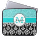 Meisjes, Blauwgroen, Glitter Black Damask geperson Laptop Sleeve