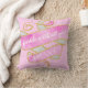 Meisjes en gooien roze kussens met de inspirerende uitspraak "Sparkle with all your hart" in een elegant wit schrift, met een roze lintbanner achtergrond en een gouden glitter sparkles.