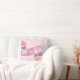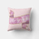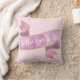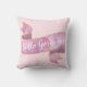 Meisjes en gooien roze kussens met de woorden "Hallo Prachtig" in een elegant wit schrift, met een lila paarse lintbanner achtergrond en een gouden glitter glans.