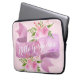 Een roze laptophoes met een stomp met de woorden "Hallo Prachtig" in een elegant wit script, met een lila paarse lintbannerachtergrond. Twee prachtige lentesflorale waterverven met roze rozen en groen maken het ontwerp compleet. Deze dwerghoes voor vrouwelijke en grillige laptop zou een perfecte verjaardag of kerstcadeau zijn!