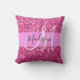 Meisjes en glazen warme roze glitter speurt witte monogram naam en initiaal gooit kussen. Uw douanenaam en monogram worden geschreven in een elegant handgeschreven manuscript met letters met een roze achtergrond. Een perfecte verjaardag of kerstcadeau!