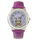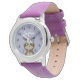 Dit moderne en meisjesachtige kinder horloge heeft een prachtige, handbeschilderde luiaard cartoon met een prachtige bloemenkrans in haar haar, op een schattige paarse achtergrond. Dit floral waterverf luiaard horloge heeft ook een plek voor u om de naam van uw meisje toe te voegen in elegante typografie. Het perfecte wildlife ontwerp voor het eerste horloge van elk kind!