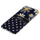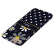 Een Barely Er iPhone 6 Plus Hoesje met een girale retro-modaal bloempatroon bovenaan met schattige witte daisies met gele centers tegen een blauw marinesoldaat, en een trendy blauw en wit polka stippatroon onderaan. Ieder meisje zou haar naam graag gepersonaliseerd zien op dit stijlvolle design.