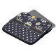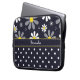 Een laptophoes van 10 inch met een korrelig patroon met een zijwaartse spiraalvormig bloempatroon bovenaan met witte mazen met gele centers tegen een blauw marinesoldaat en een trendy blauw en wit puntpatroon onderaan. Personaliseer u door jouw naam toe te voegen. Perfect cadeau voor een stijlvol meisje.
