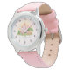 Dit magische en schattige sprookjesachtige kinder horlogeontwerp is voorzien van een prins en prinses, met een betoverd roze kasteel, vlinders, bloemen, hazen, een magisch hert en grillige paddestoelen. Dit roze en girly "once upon a time" -ontwerp kan gemakkelijk worden gepersonaliseerd met uw meisjesnaam in een elegant lettertype.